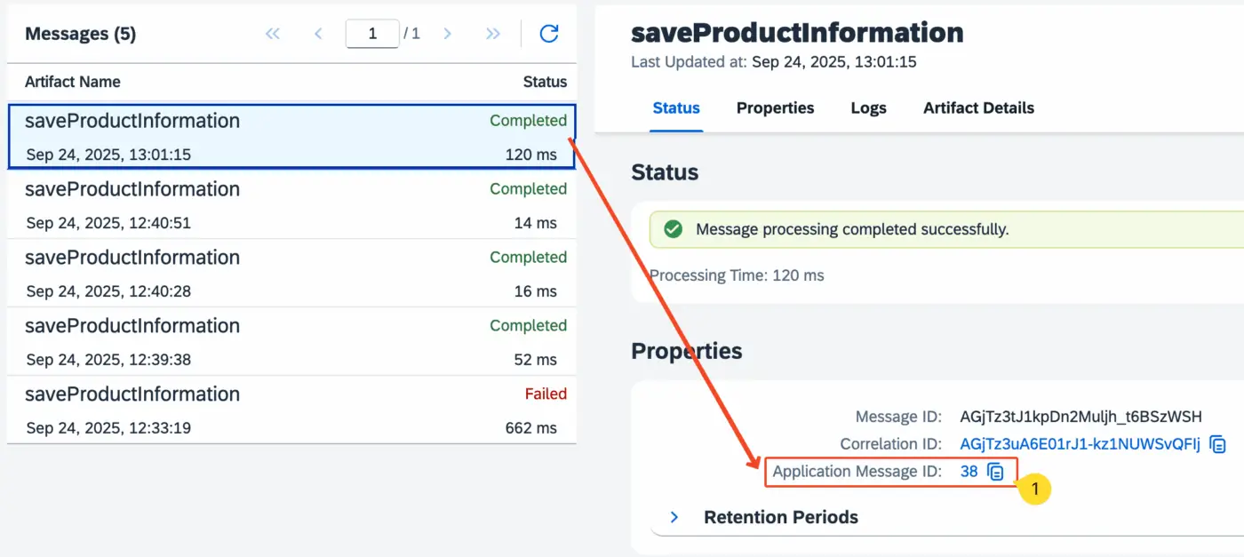- Message ID – The unique identifier that is associated with the message processing log (MPL).
